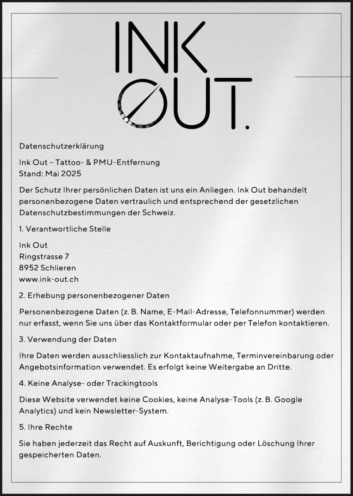 Bei INK OUT erwartet dich eine faire Preisgestaltung, angepasst an dein Hautbild und dein Tattoo.
